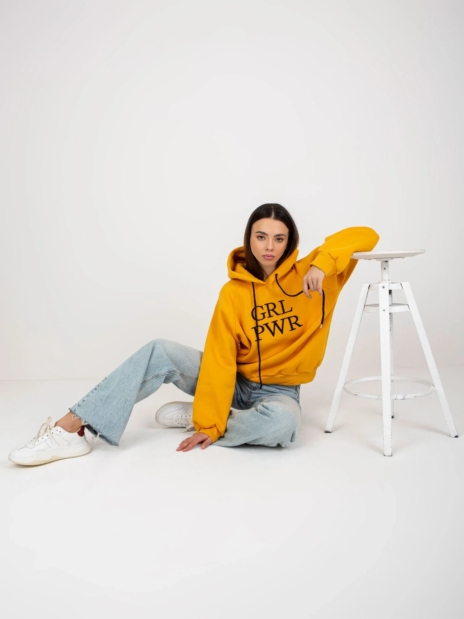 Rozměry mikiny ve velikosti S/M měřené na plocho: šířka v podpaží - 53 cm, délka rukávu - 66 cm, celková délka - 67 cm.