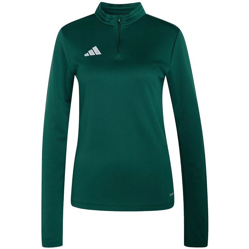 Bluza damska adidas Entrada 26 Training Top zielona KE9824 Bluza damska adidas sprawdzi się podczas treningów. Dopasowany krój. Krótki zamek. Technologia Climacool odprowadza i rozprasza pot. Wyszywane logo. Materiał: 100% poliester z recyklingu
