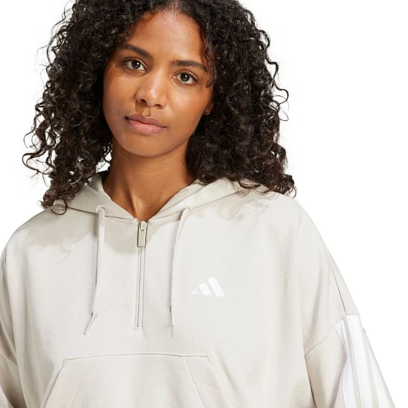 Bluza damska adidas Essentials 3-Stripes French Terry Quarter-Zip Hoodie beżowa JN1958 Bluza dla kobiet adidas sprawdzi się podczas codziennego użytkowania. Miła w dotyku, bawełniana tkanina. Rękawy wykończone elastycznymi ścigaczami. Krótszy, luźny krój z obniżoną linią ramion. Krótki suwak pod szyją. Zintegrowany kaptur ze sznurkiem do regulacji. Niewielkie, wyszywane logo na przodzie. Paski na ramionach. Materiał: 55% bawełna, 36% poliester pochodzący z recyklingu, 9% wiskoza