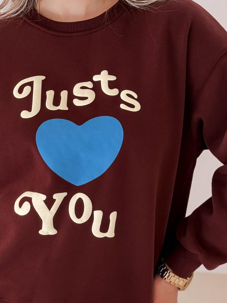 Dámská mikina JUST LOVE YOU s potiskem oversize vínová FashionStreet BY1474