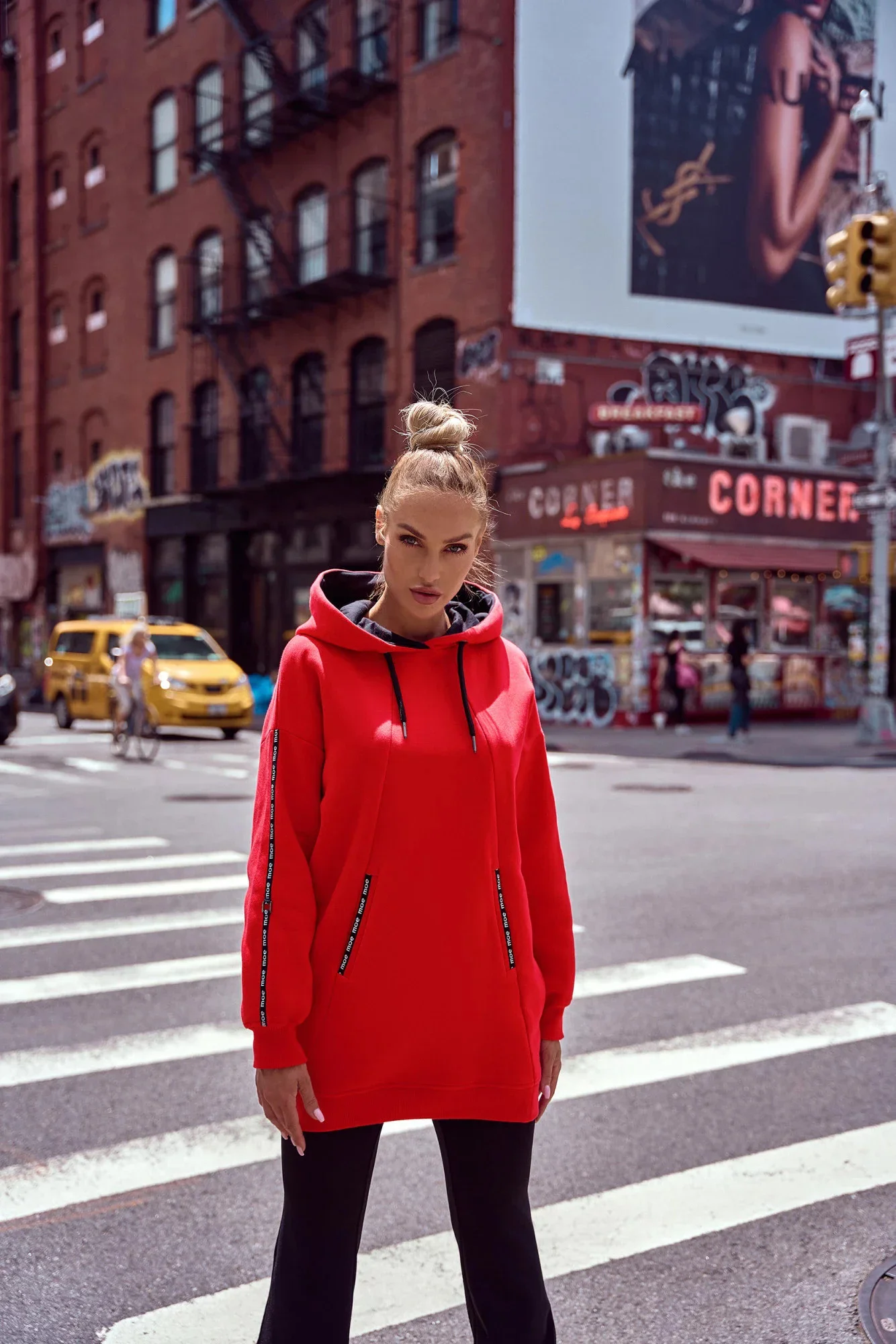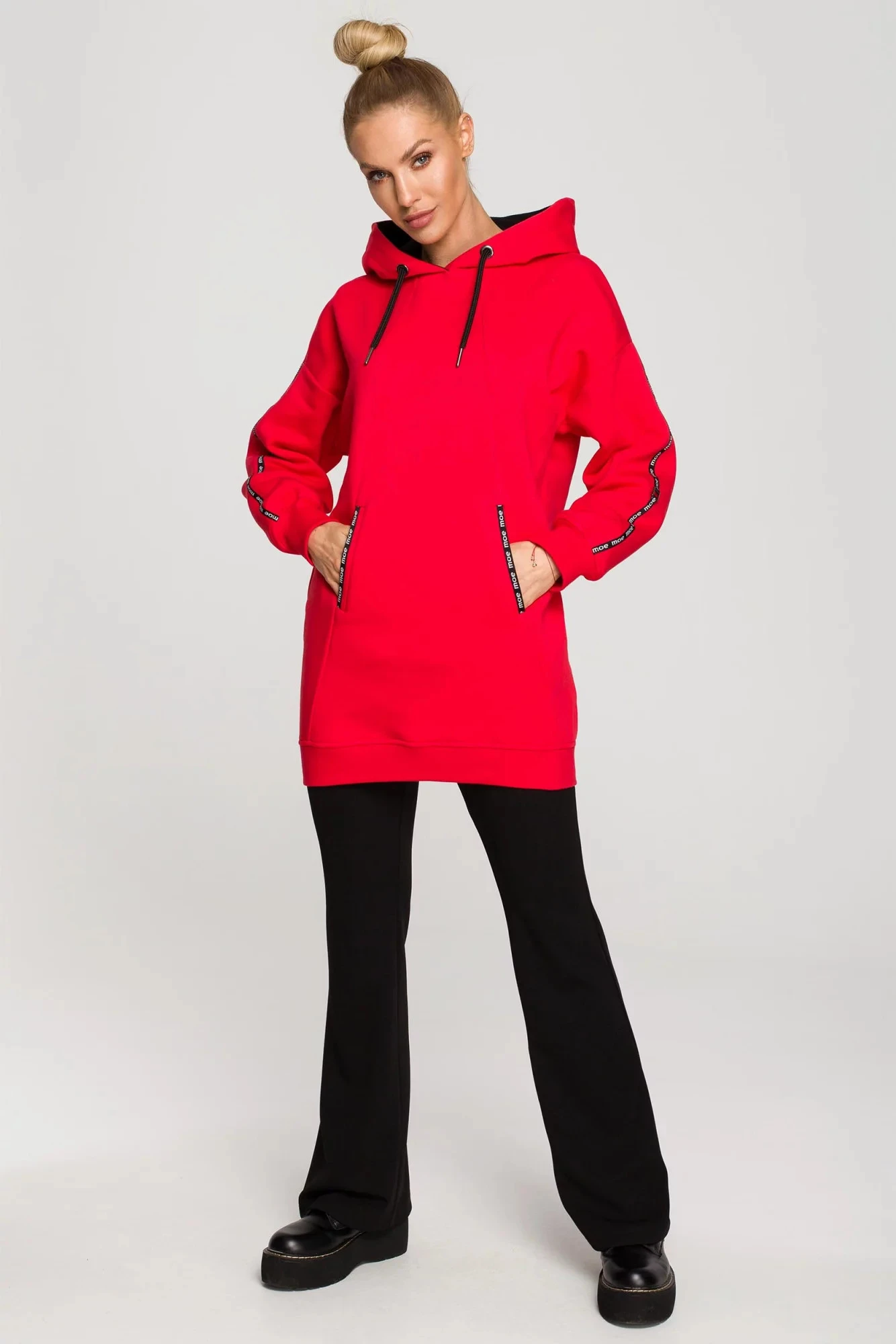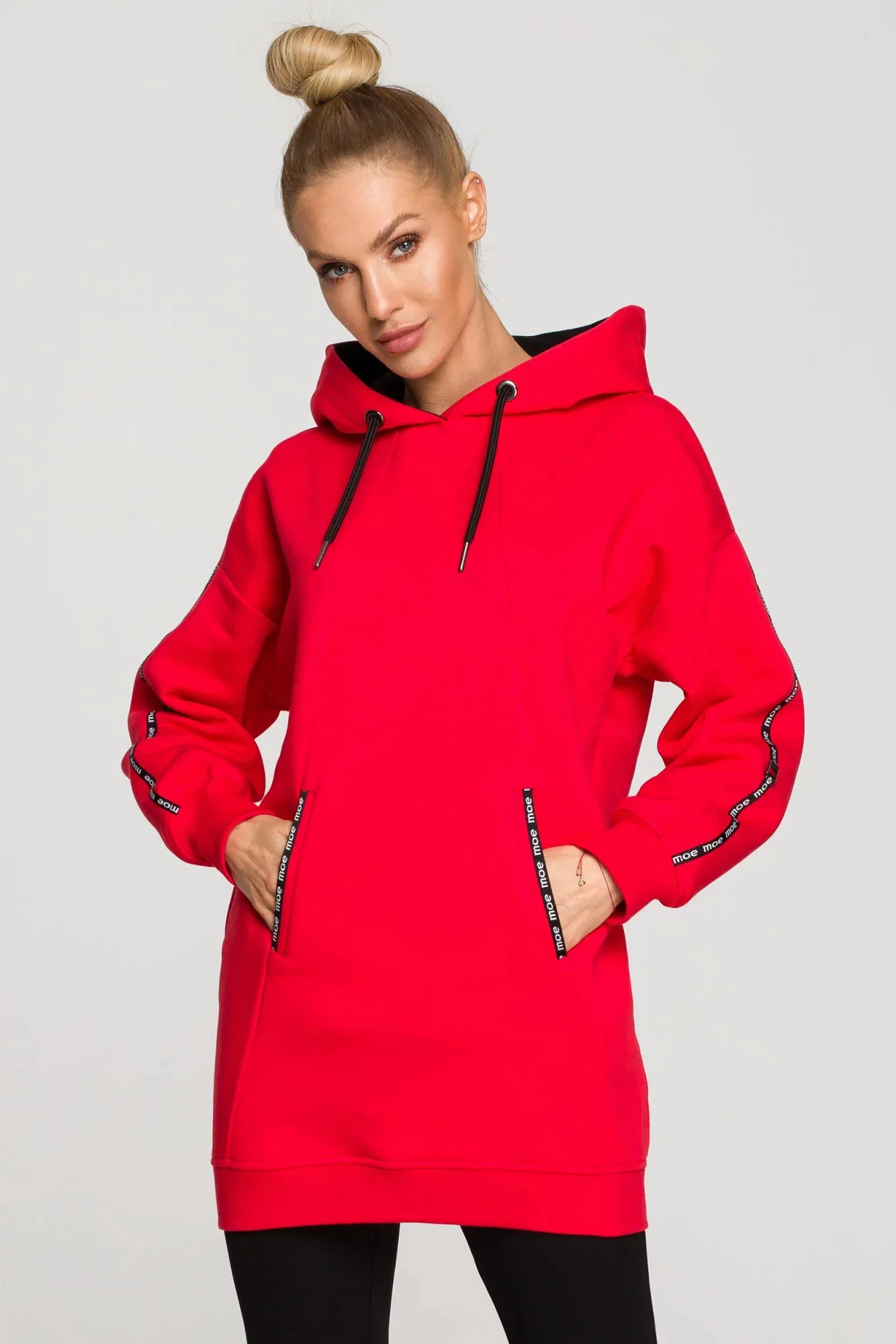 Tuniky milujeme, protože jsou tak univerzální. Náš svetr s kapucí, ozdobnými pruhy s logem a předními kapsami se bude skvěle hodit k legínám nebo džínům. Je to nejen hřejivý a pohodlný kousek, ale také moderní design, který si rádi stylizujete podle svého.