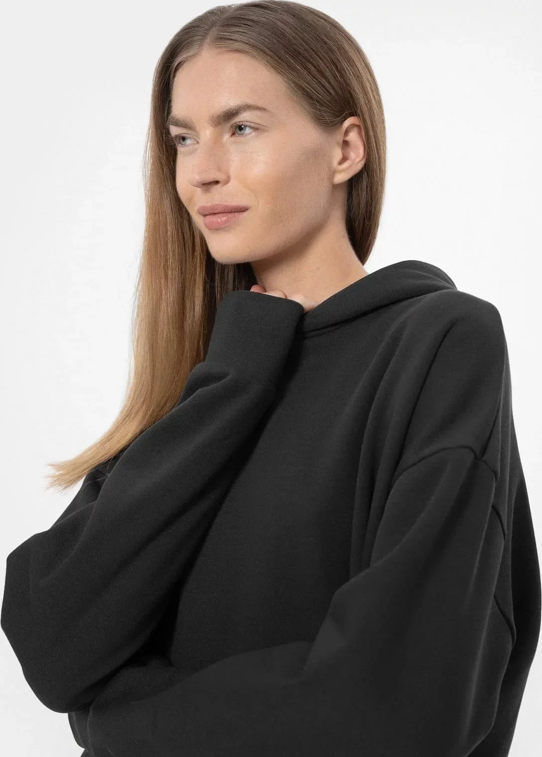 Dámská tepláková mikina bez zapínání a s kapucí. Ušili jsme ji z příjemné na dotek pleteniny s vysokým obsahem bavlny.