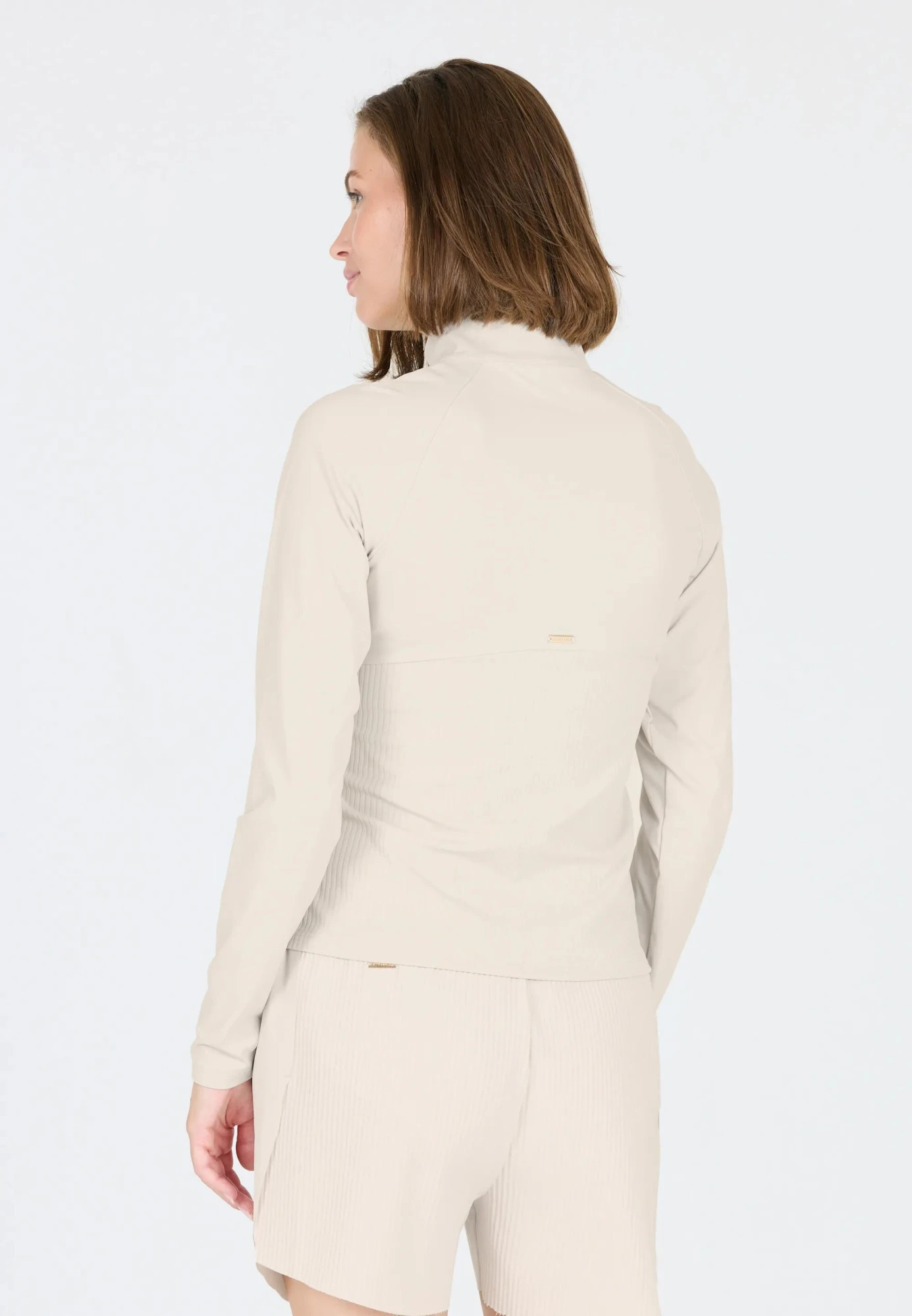 Díky zapínání na celý zip se snadno obléká i svléká. Stojáček chrání krk před větrem a mírným chladem, a raglánové rukávy neomezují v pohybu.