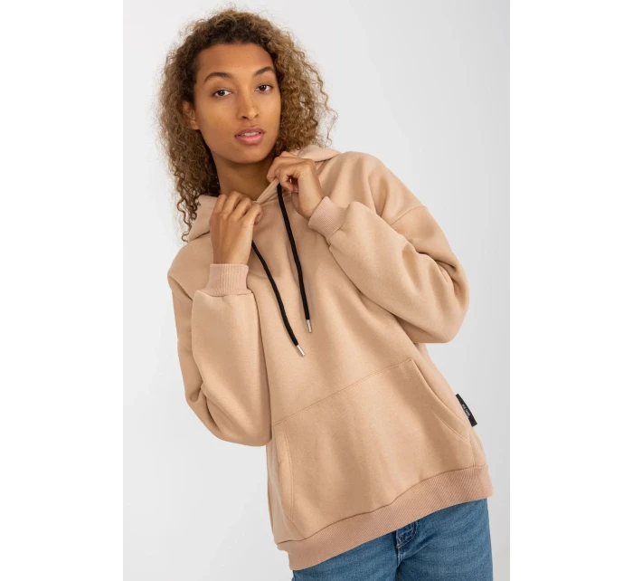 Béžová a ecru mikina basic s kapucí RUE PARIS .
