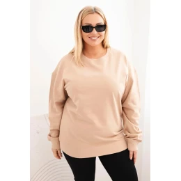Dámská mikina Plus Size bavlněná basic s kulatým výstřihem bežová