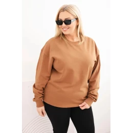 Dámská mikina Plus Size bavlněná basic s kulatým výstřihem camelová
