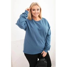 Dámská mikina Plus Size bavlněná basic s kulatým výstřihem modrá