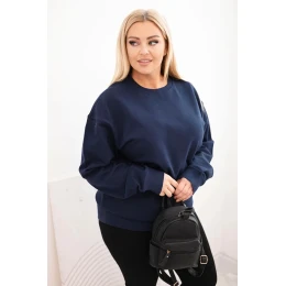 Dámská mikina Plus Size bavlněná basic s kulatým výstřihem modrá
