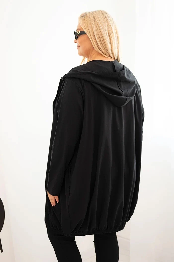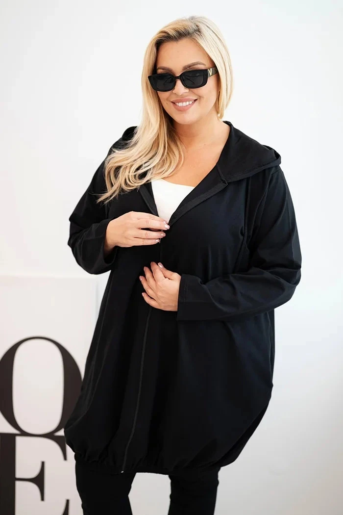 Dámská mikina Plus Size bavlněná s kapucí a zipem černá