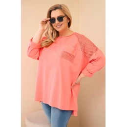 Dámská mikina Plus Size bavlněná s potiskem meruňková