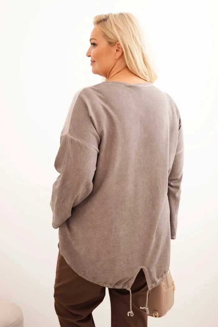 Dámská mikina Plus Size bavlněná s potiskem srdce a model 21321860 hnědá - K-Fashion