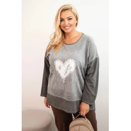 Dámská mikina Plus Size bavlněná s potiskem srdce a šňůrkami grafitová