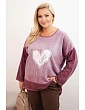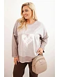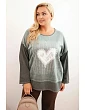 Dámská mikina Plus Size bavlněná s potiskem srdce a šňůrkami khaki