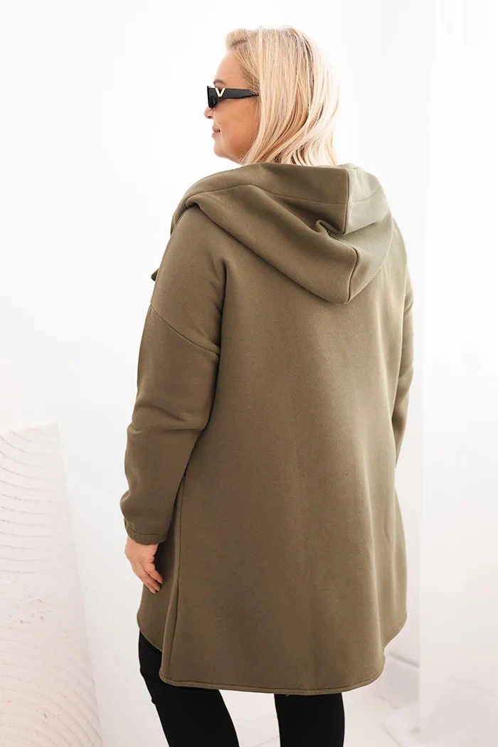 Dámská mikina Plus Size s kapucí a asymetrickým zipem khaki