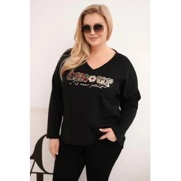 Dámská mikina Plus Size s nápisem a výstřihem do V černá