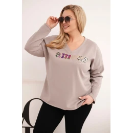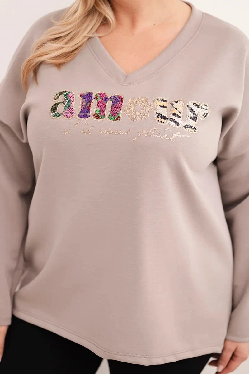 Dámská mikina Plus Size s nápisem a výstřihem do V fango