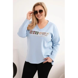 Dámská mikina Plus Size s nápisem a výstřihem do V modrá