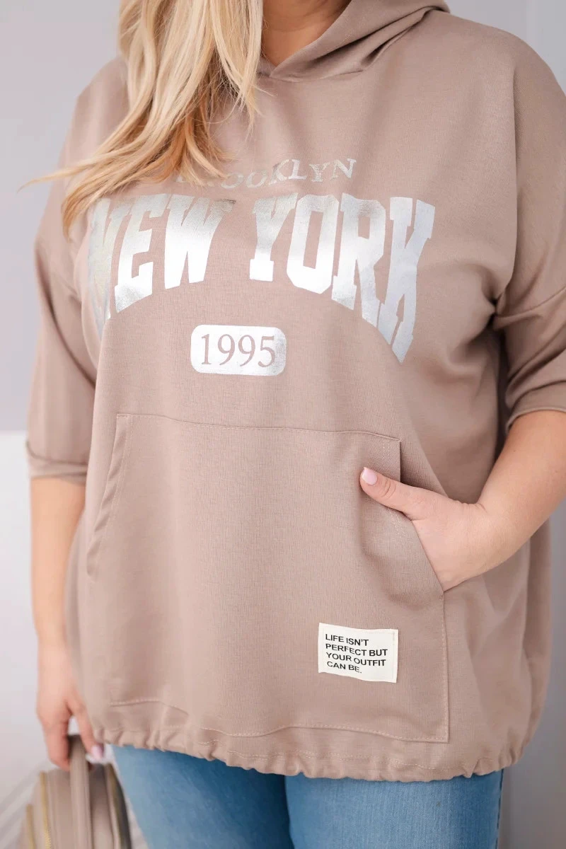 Dámská mikina Plus Size z viskózy s kapucí a klokaní kapsou fango