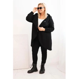 Dámská mikina Plus Size zateplená s kapucí a asymetrickým zipem černá