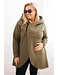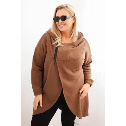 Dámská mikina Plus Size zateplená s kapucí a asymetrickým zipem hnědá