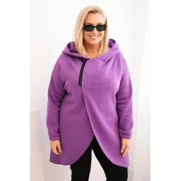 Dámská mikina Plus Size zateplená s kapucí a asymetrickým zipem tmavě fialová