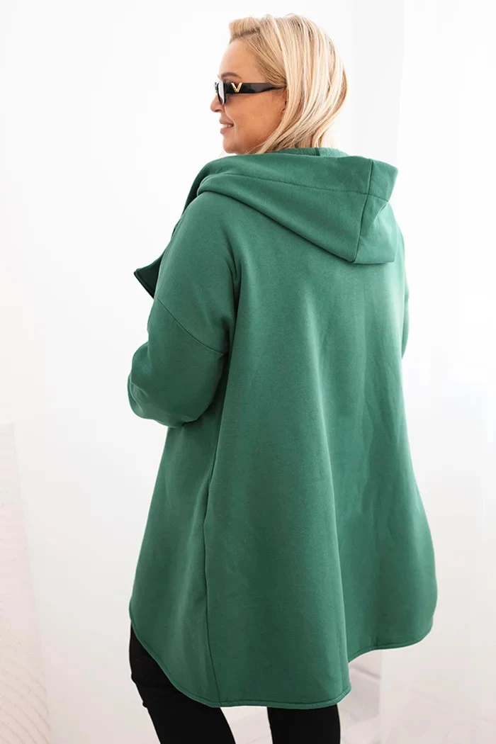 Dámská mikina Plus Size zateplená s kapucí a asymetrickým zipem tmavě zelená