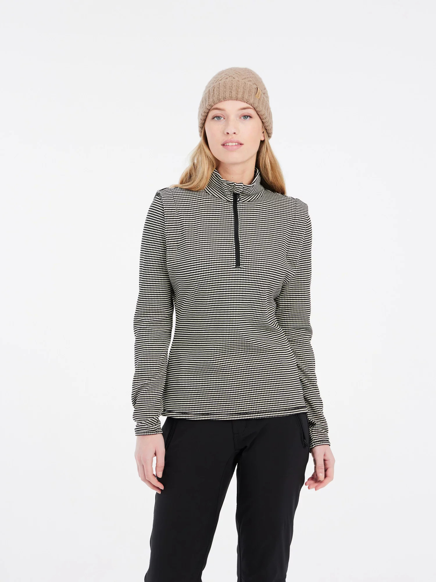 Vysoký límec vás ochrání před štiplavým větrem a materiál s příměsí elastanu vás zahřeje, přičemž zajišťuje volnost pohybu.