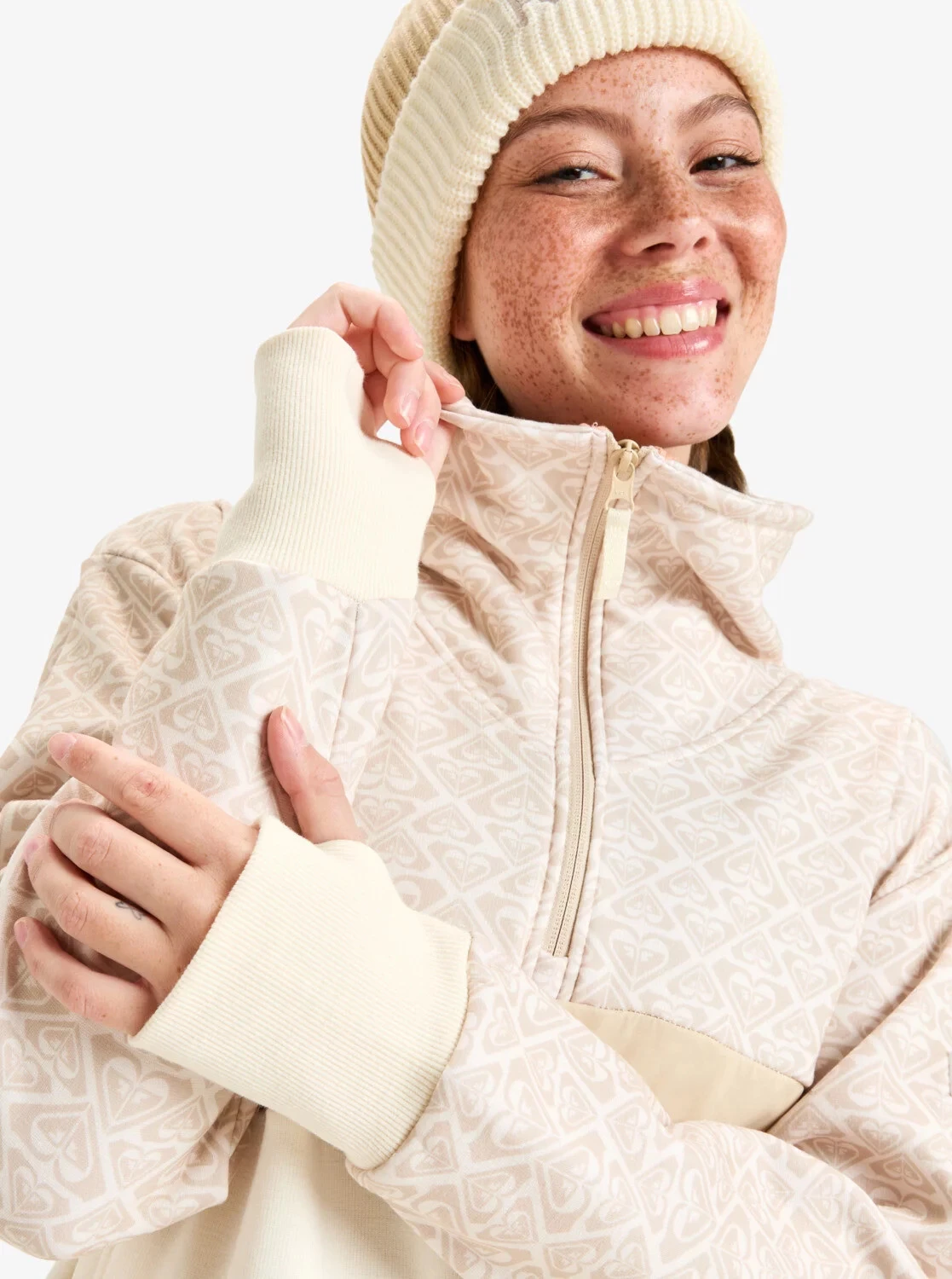 Poloviční zip (half-zip) pro snadné oblékání a ventilaci.