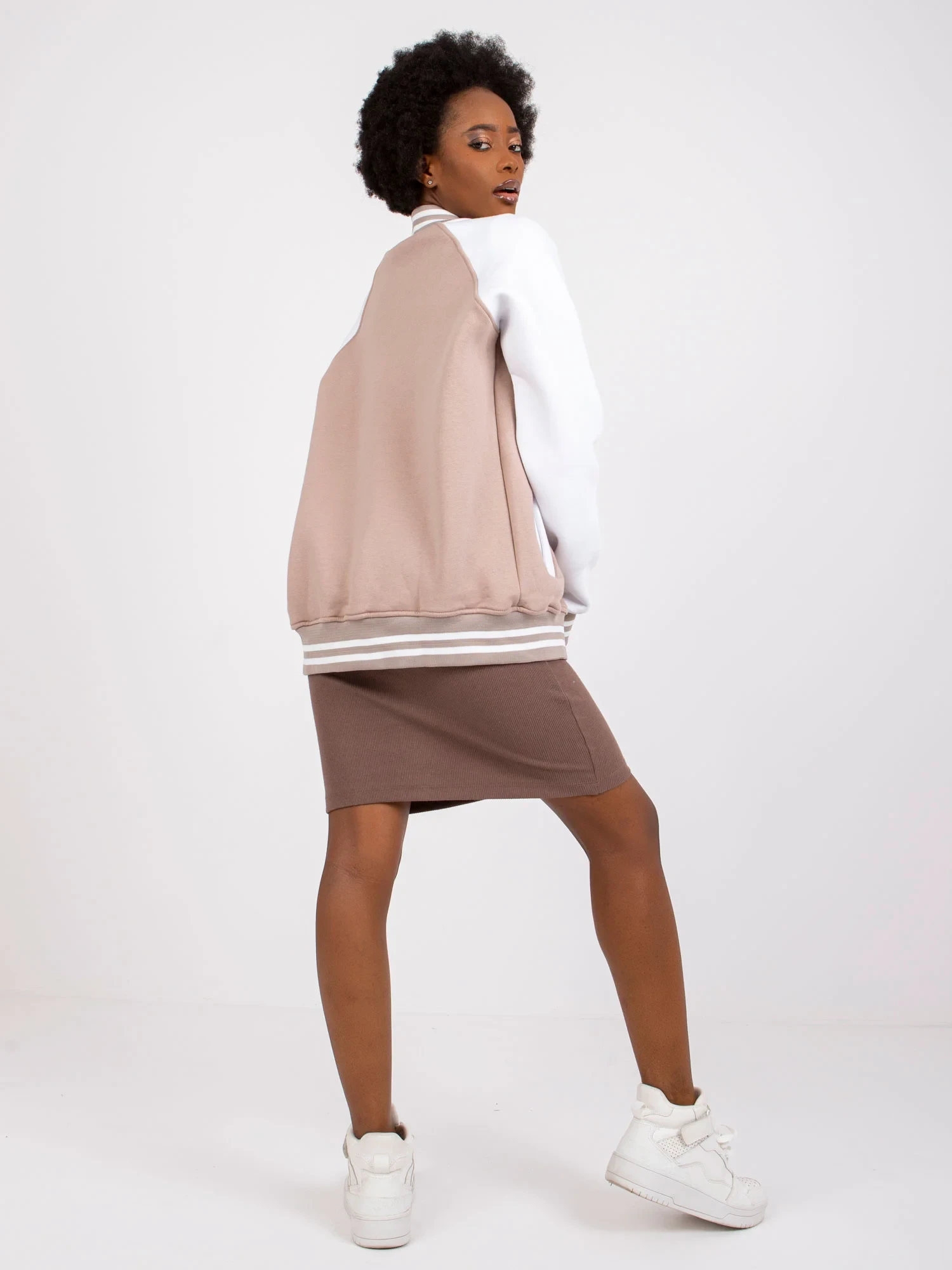 Modelka má na sobě velikost S/M. Rozměry modelky: výška 162 cm, poprsí 80 cm, pas 63 cm, boky 80 cm.