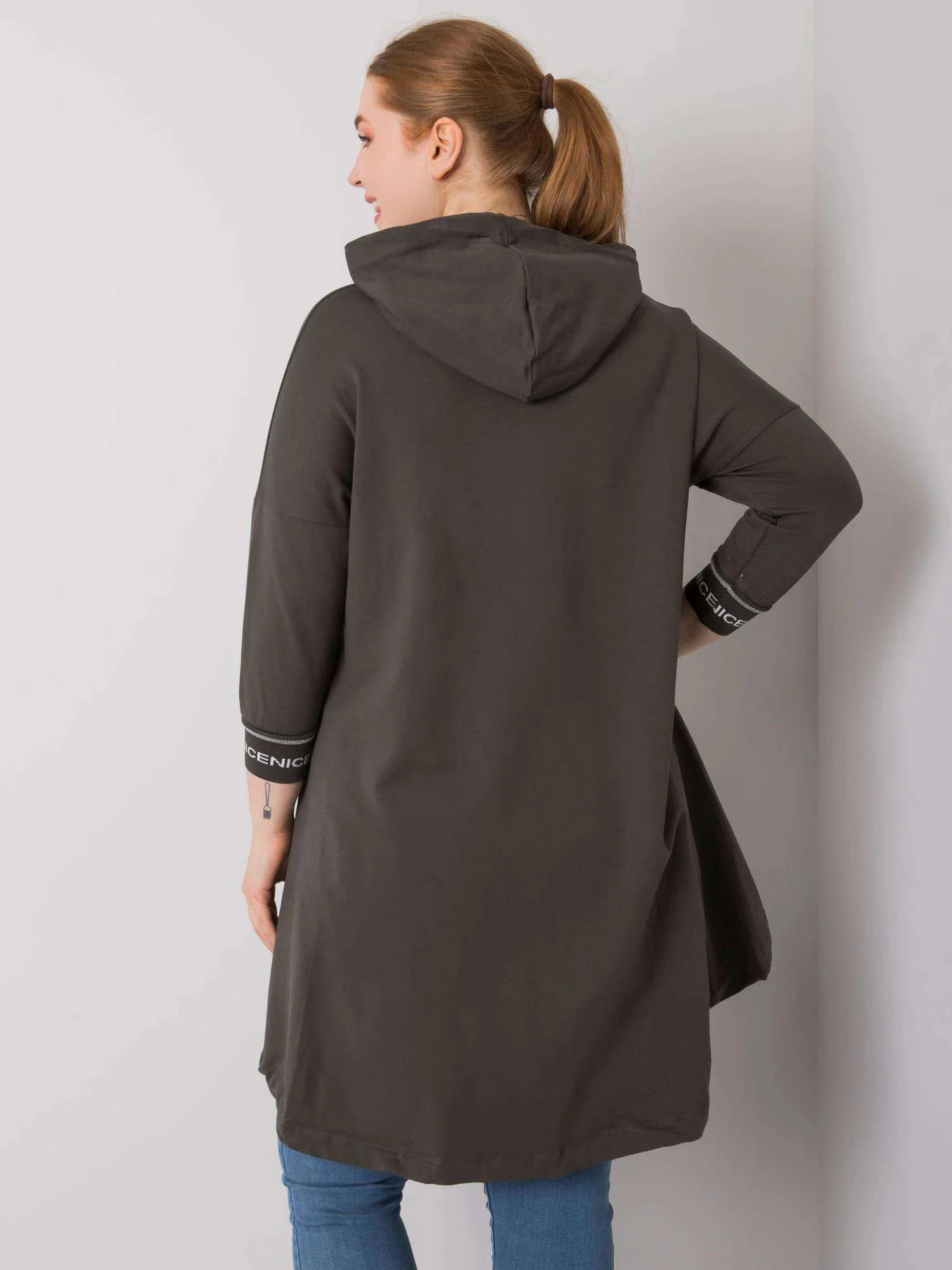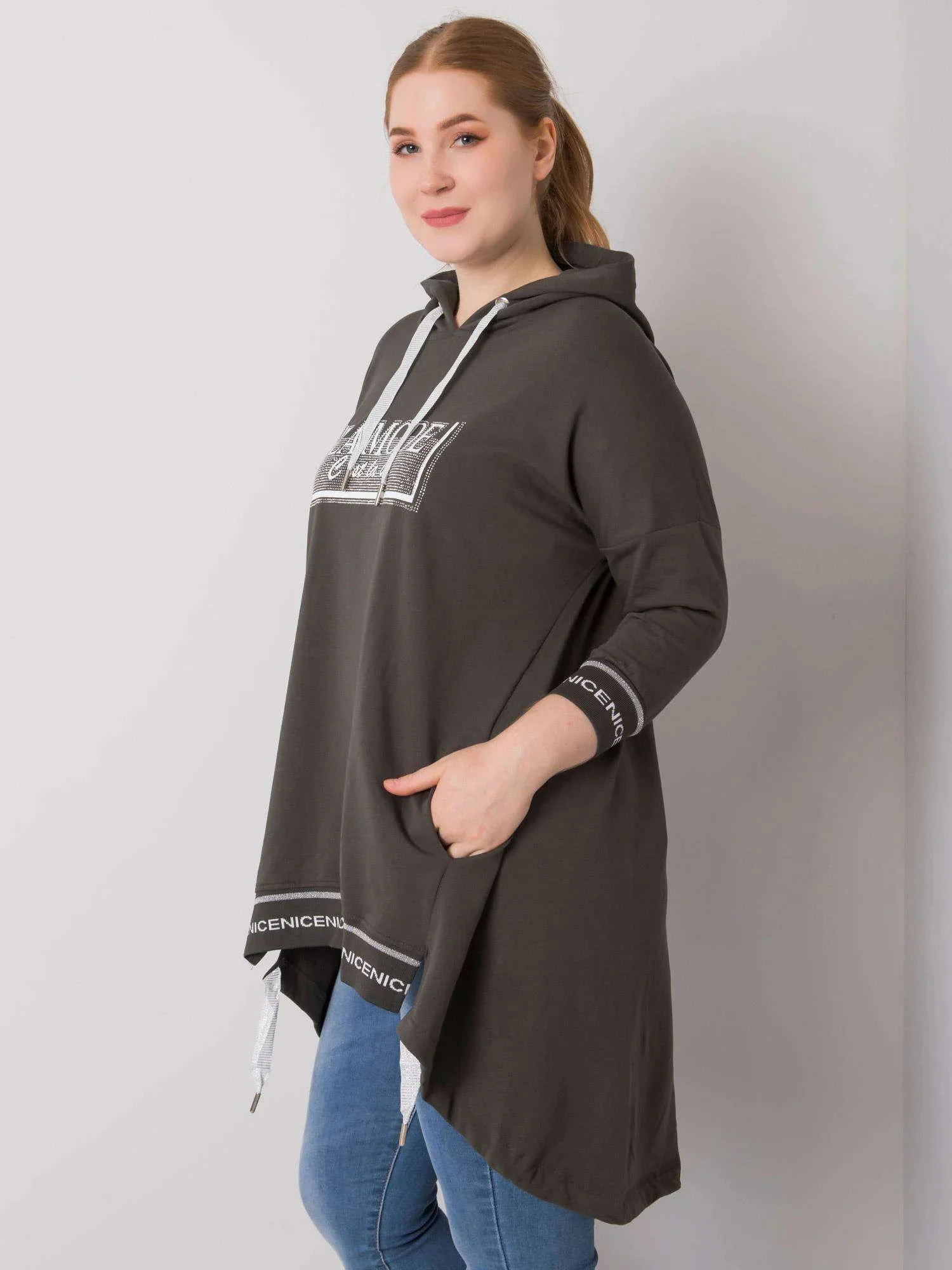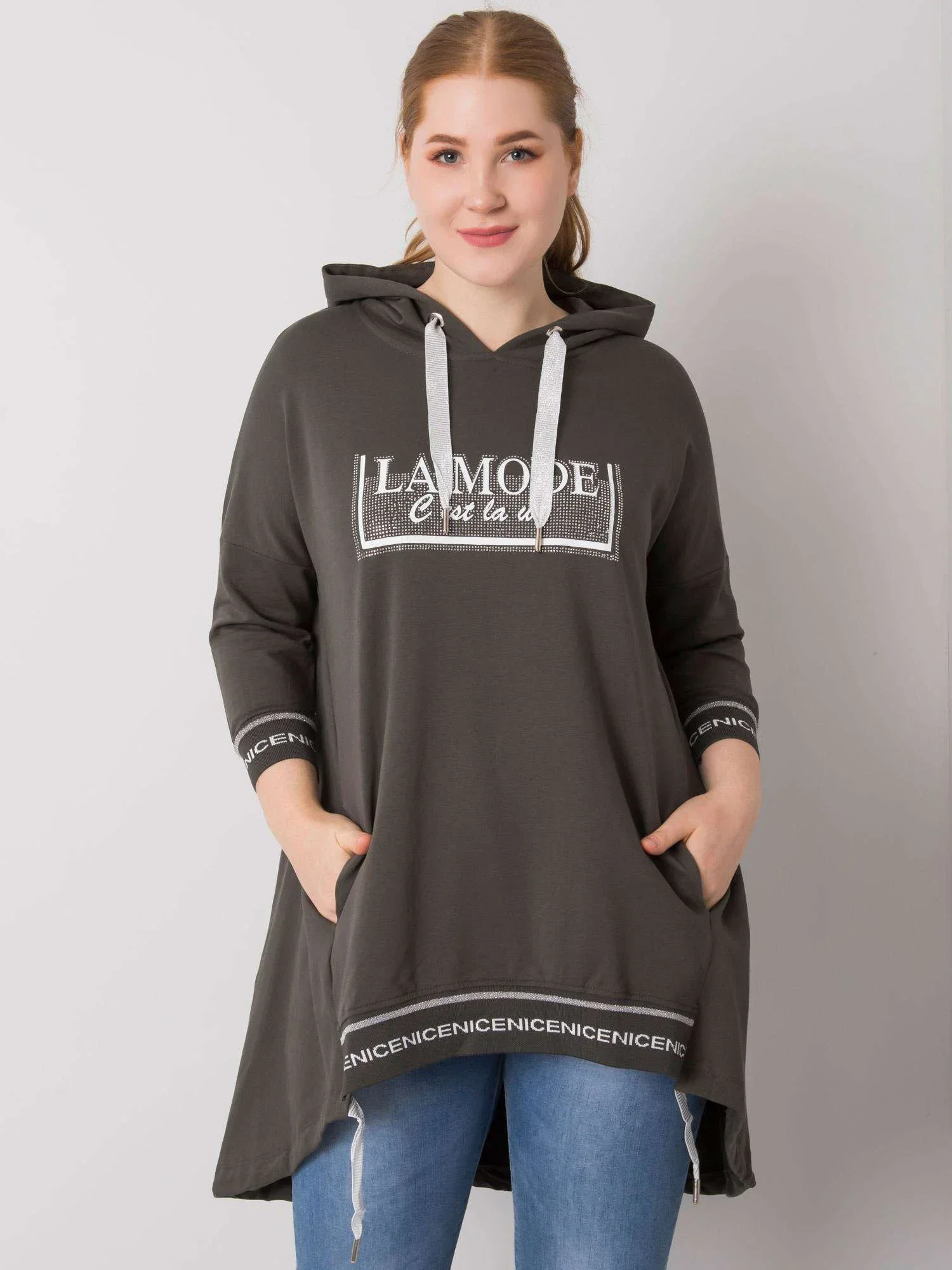 Tmavě khaki dámská plus size mikina s kapsou .