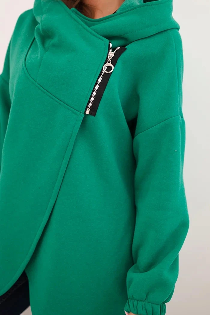 Dámská mikina s kapucí a asymetrickým zipem zelená