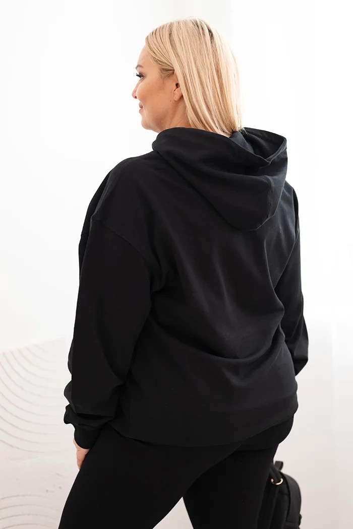 Dámská mikina s kapucí a klokaní kapsou Plus Size z bavlny černá