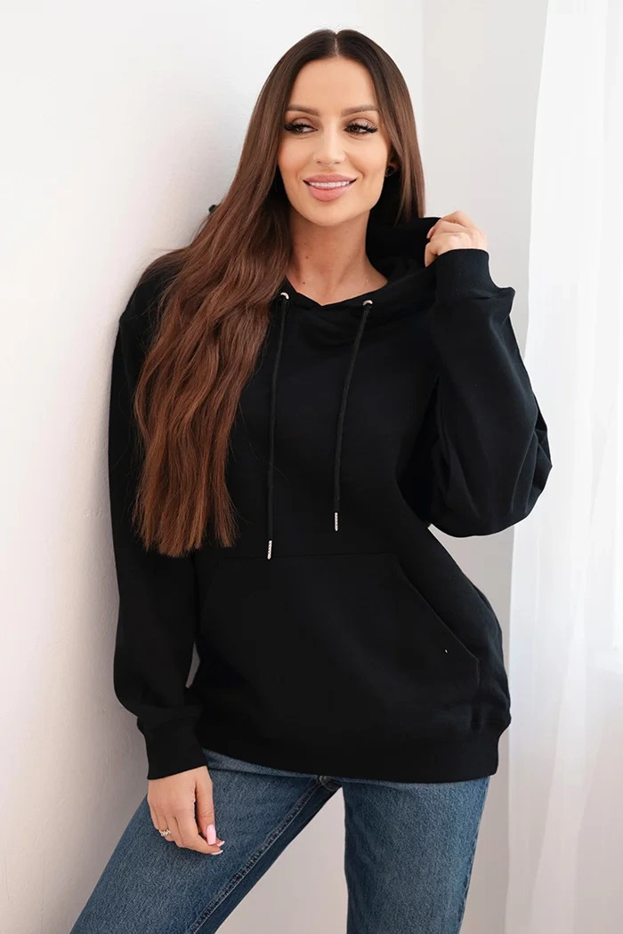 Dámská mikina s kapucí a klokaní kapsou z bavlny černá
