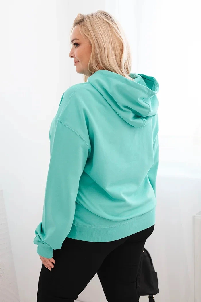 Dámská mikina s kapucí a klokankou Plus Size z bavlny mátová