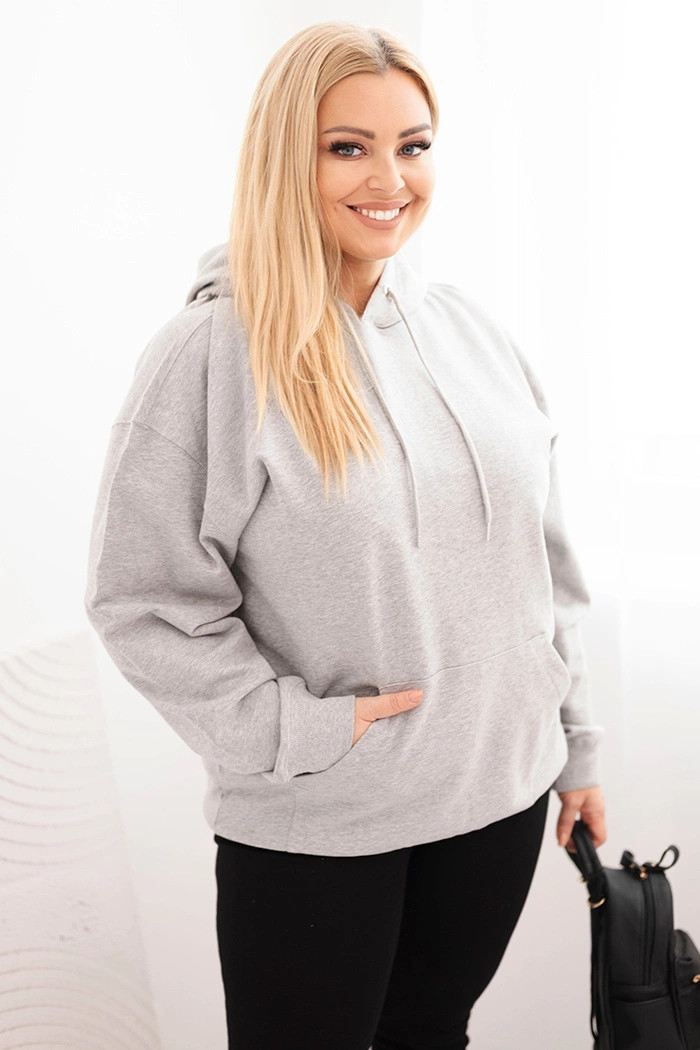 Dámská mikina s kapucí a klokankou Plus Size z bavlny šedá