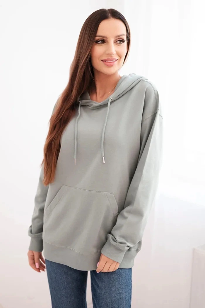 Dámská mikina s kapucí a model 21494997 z bavlny tmavě mátová - K-Fashion