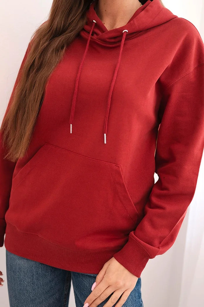Dámská mikina s kapucí a model 21495001 z bavlny bordová - K-Fashion