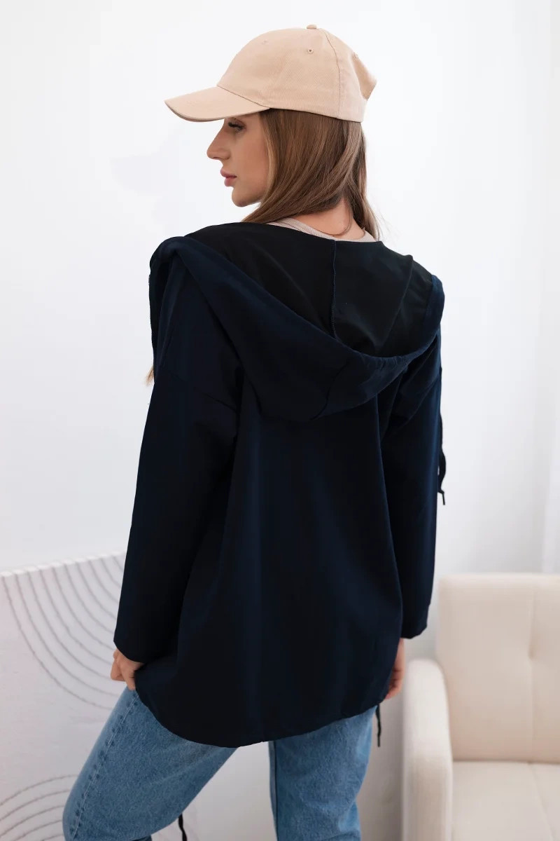 Dámská mikina s kapucí a šňůrkou dole tmavě modrá