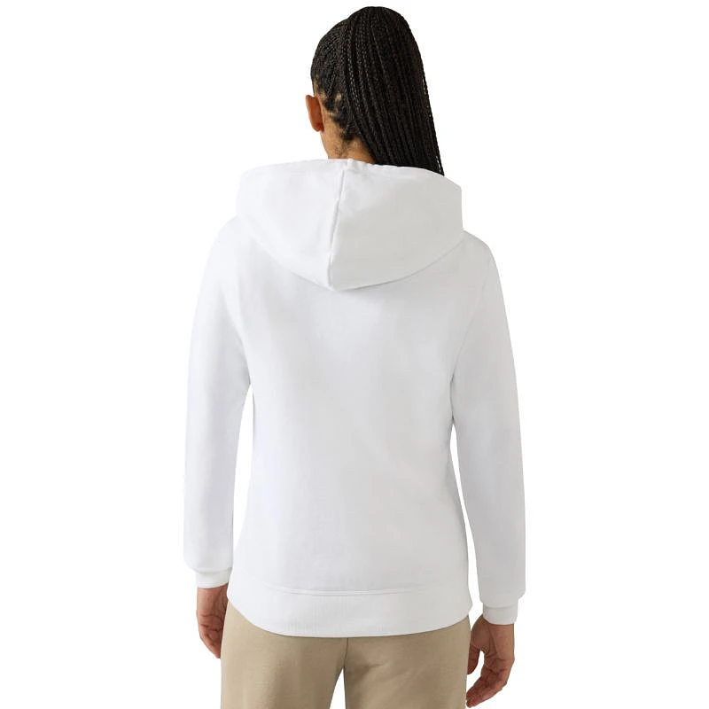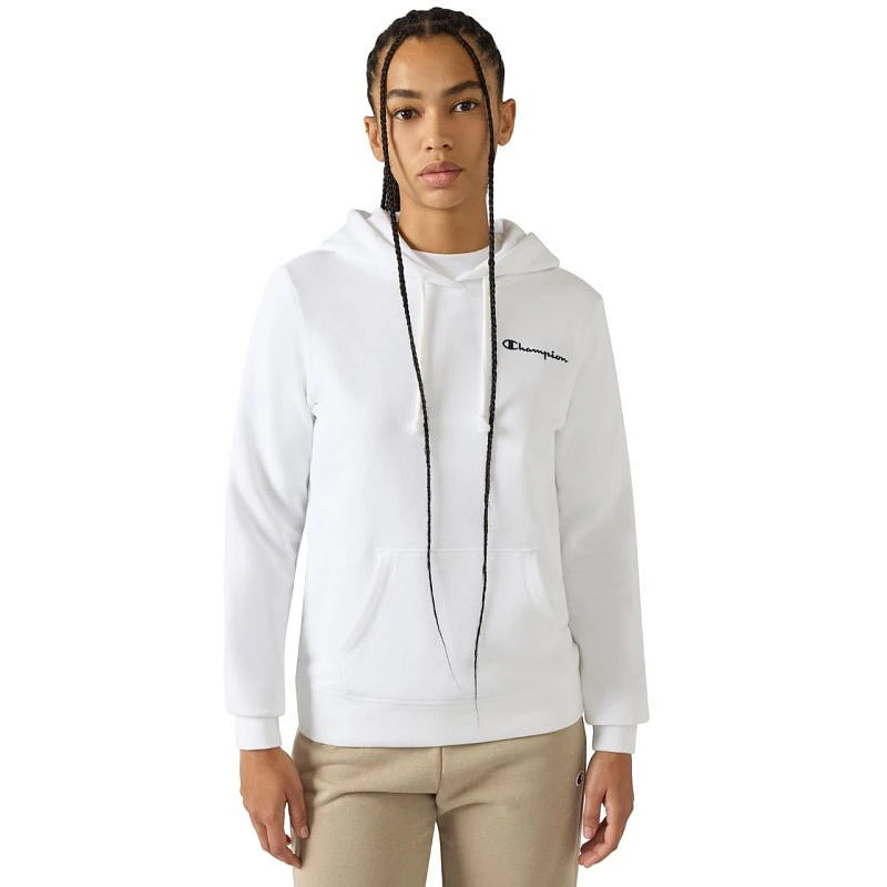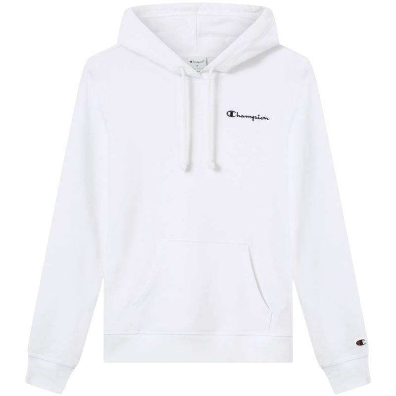 Dámská mikina Champion bílá 118404 WW001 Tato dámská mikina Champion je ideální pro každodenní nošení, má úzký střih, žebrované manžety a spodní lem, klokaní kapsu, nastavitelnou kapuci se stahovací šňůrkou, decentní logo na hrudi, malé logo na rukávu, materiál: 69 % bavlna, 31 % polyester.
