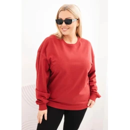 Dámská mikina s kroužkovým designem Plus Size bavlněná basic s kulatým výstřihem bordó