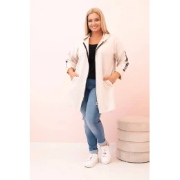 Tato dámská mikina plus size je vynikající volba pro ženy, které si cení pohodlí a módního, volného stylu. Vyrobena z měkké směsi polyesteru, viskózy a elastanu, skvěle sedí na postavě a neomezuje pohyb. Model s rozepínáním na zip a dekorativním kroužkem u zipu dodává moderní charakter, a kapuce zvyšuje funkčnost. Na rukávu se nachází módní potisk ve streetwear stylu, který přitahuje pozornost a podtrhuje sportovní styl mikiny.