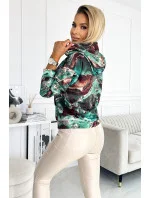Přidání recenze k Dámská mikina s tyrkysovo-hnědým mramorovým vzorem a s kapucí 390-2