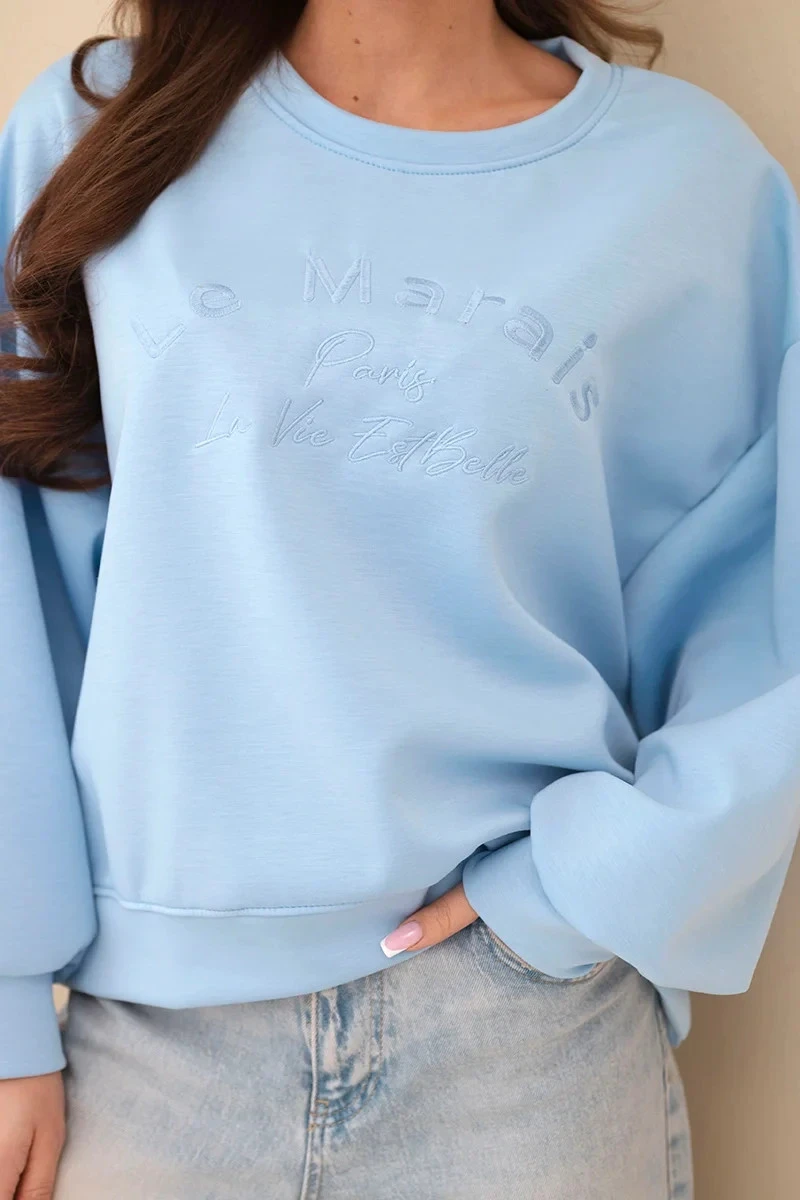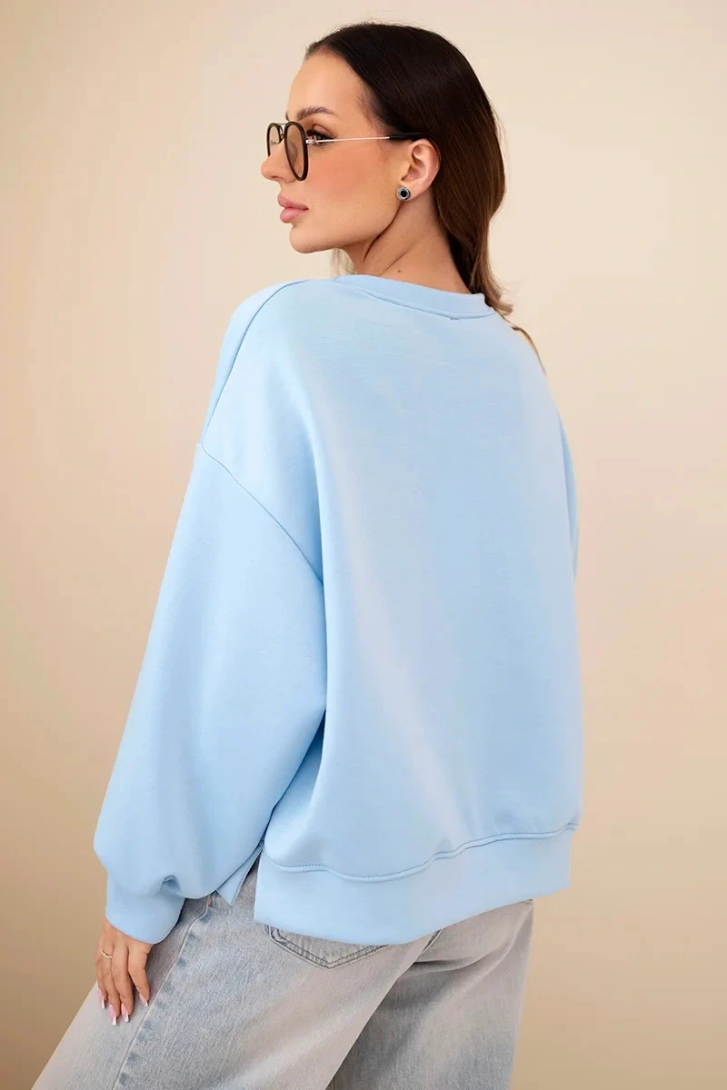Dámská mikina s výšivkou volného střihu máslová modrá