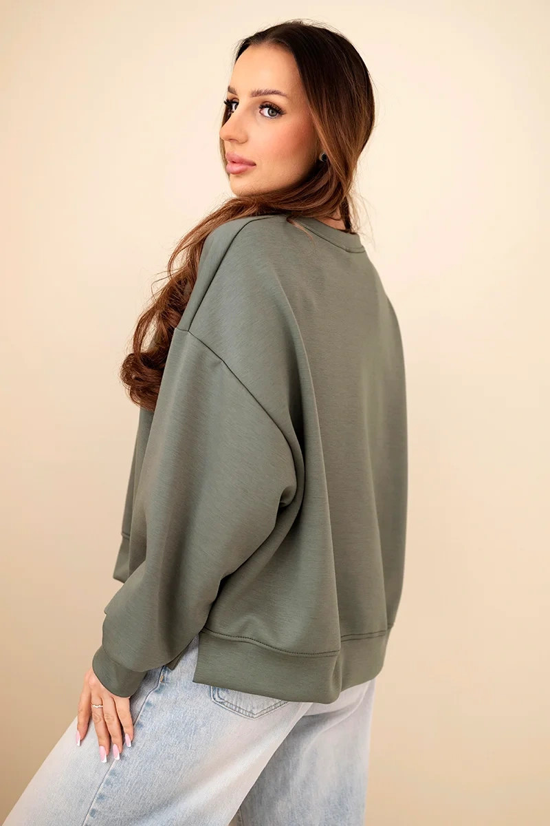 Dámská mikina s výšivkou volného střihu model 21893770 khaki - K-Fashion
