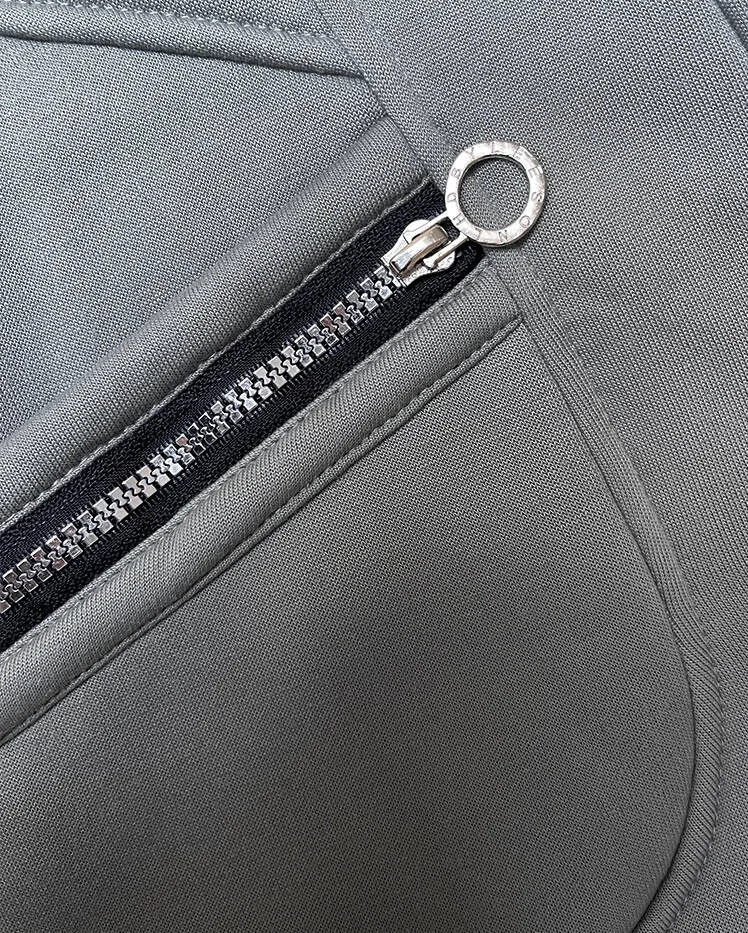 Mikina má jednoduchý střih, dvě kapsy a zapíná se zipem. Model má kapuci, kterou není možné odepnout. Mikinu zdobí vsadky ze svetříkového materiálu. Na konci rukávů jsou stahovací lemy. Model má délku k bokům.