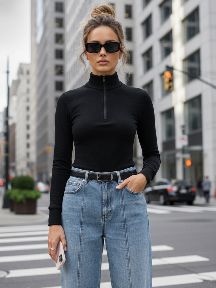 Mikina se hodí k městskému a ležérnímu stylu, nosí se s džínami, kalhotami s vysokým pasem nebo legínami. Zip u krku usnadňuje přizpůsobení počasí a stojáček se dobře osvědčí na procházkách i cestou do práce.