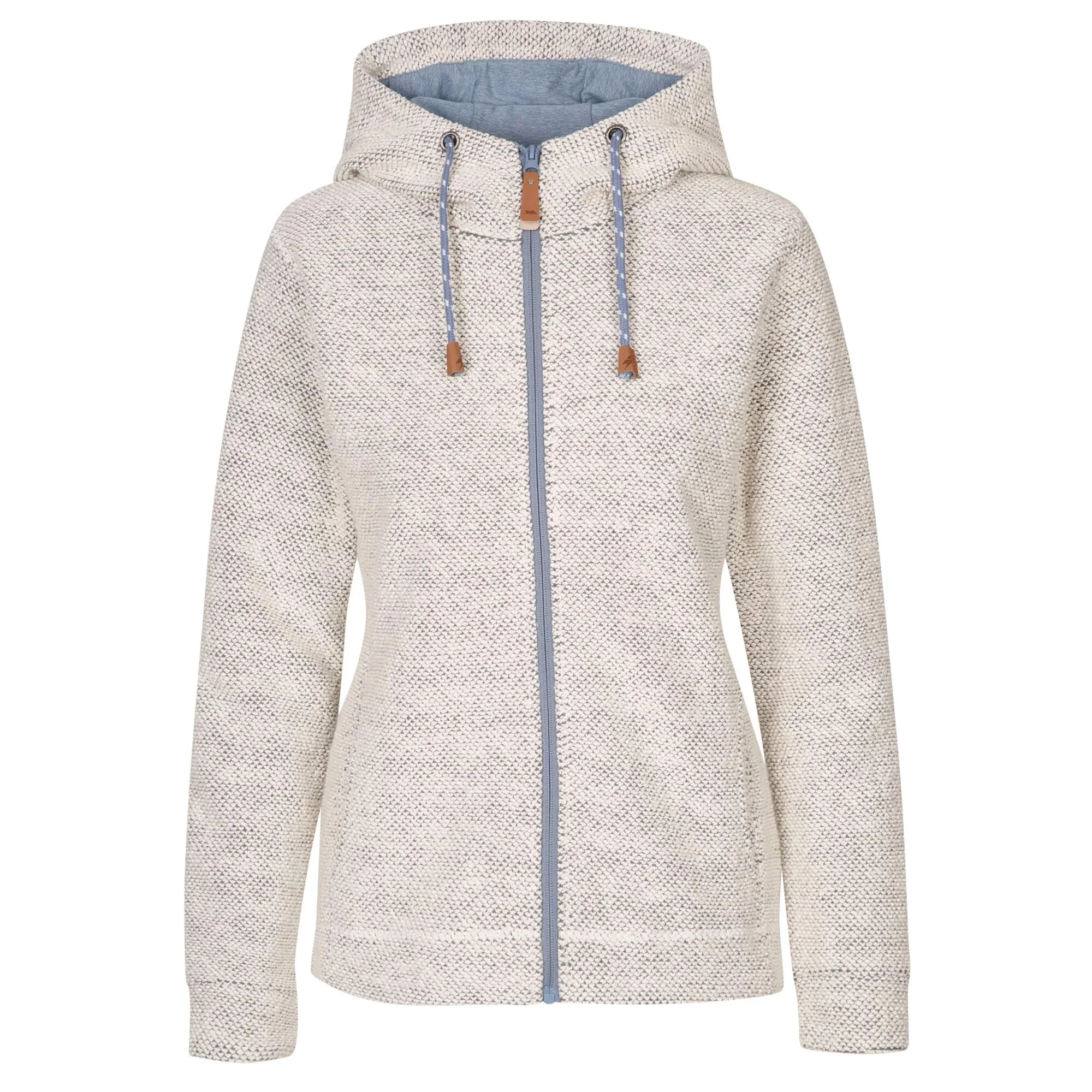 Dámská mikina Trespass Ronee z texturované pleteniny s celoplošným zipem a nastavitelnou kapucí. Mikina má postranní kapsy kam si schováte malé cennosti nebo ruce před chladem.