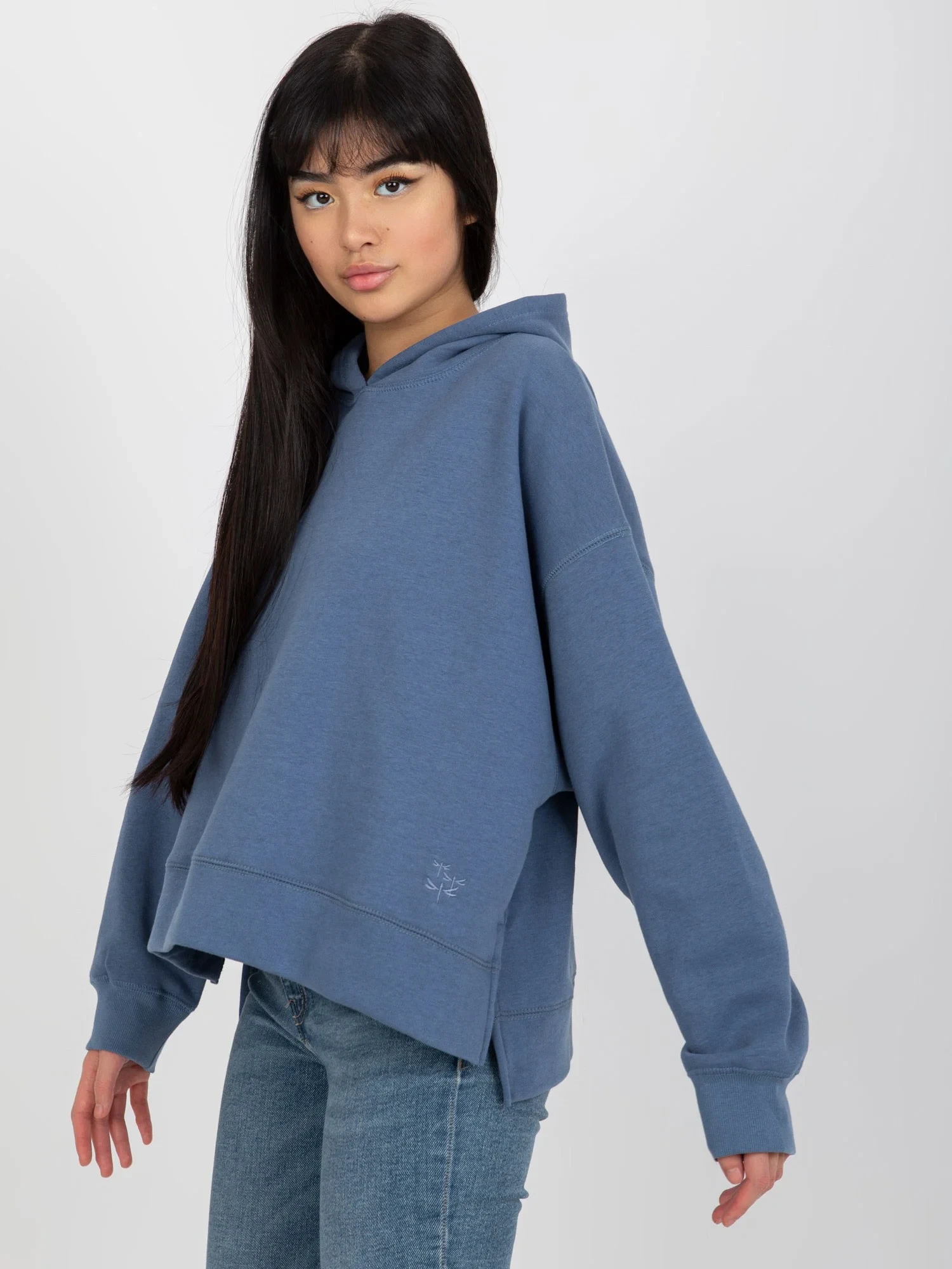 Tmavě modrá mikina s kapucí a rozparky MAYFLIES .