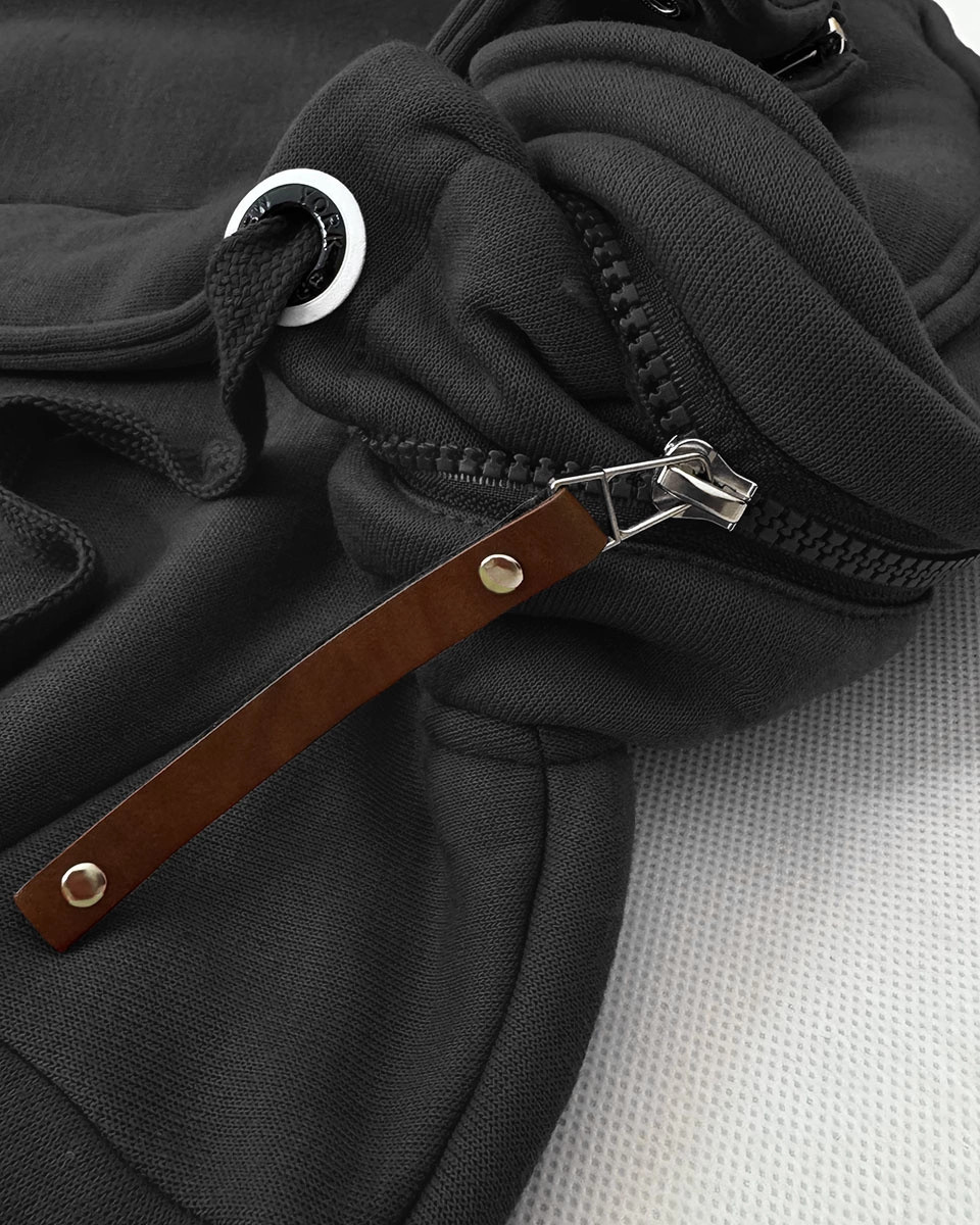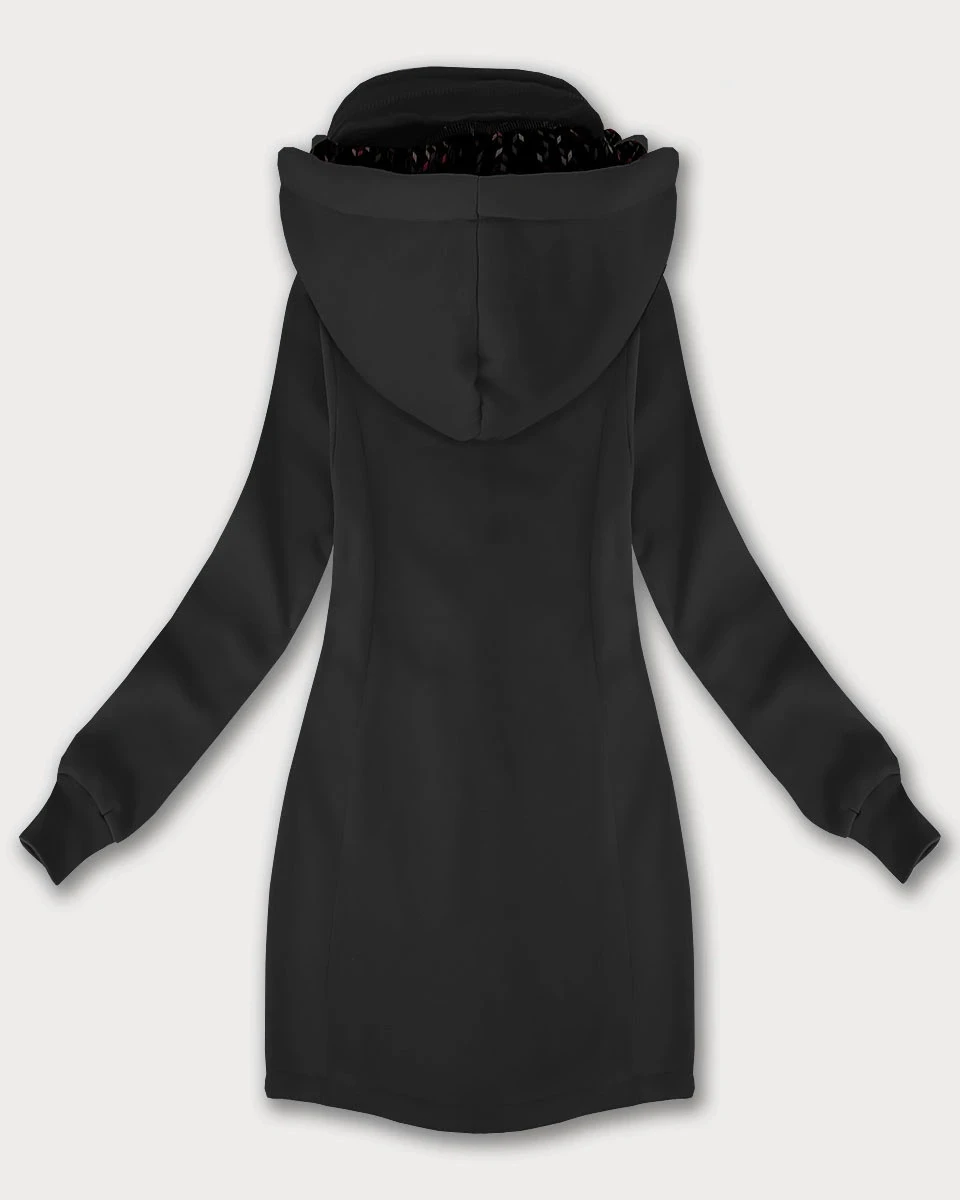Mikina je vypasovaná, uvnitř má příjemný polar (fleece), má dvě kapsy a zapíná se zipem a panelem s patentkami. Model má kapuci skrytou ve stojáčku. Kapuci není možné odepnout. Rukávy jsou olemované stahovacími lemy. Spodní okraj modelu je půlkulatý. Mikina má délku pod boky.