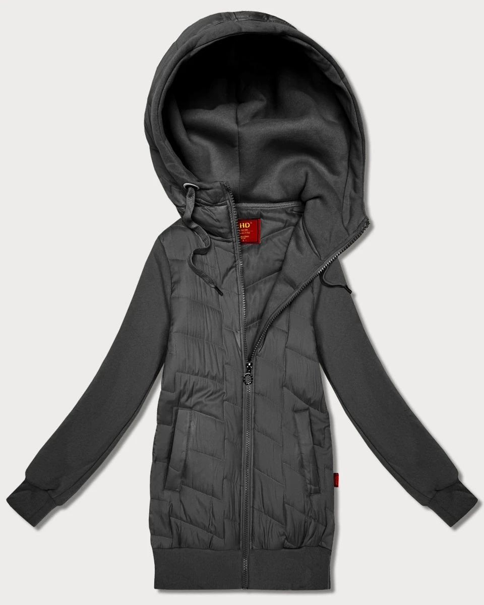 Dámská mikina v grafitové barvě z různých materiálů s kapucí model 21787462 - LHD